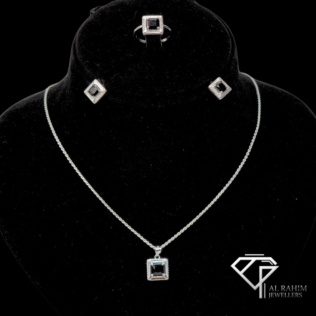 Black Zircon Square Silver Locket Set โ 10.6g Chic Sophistication
