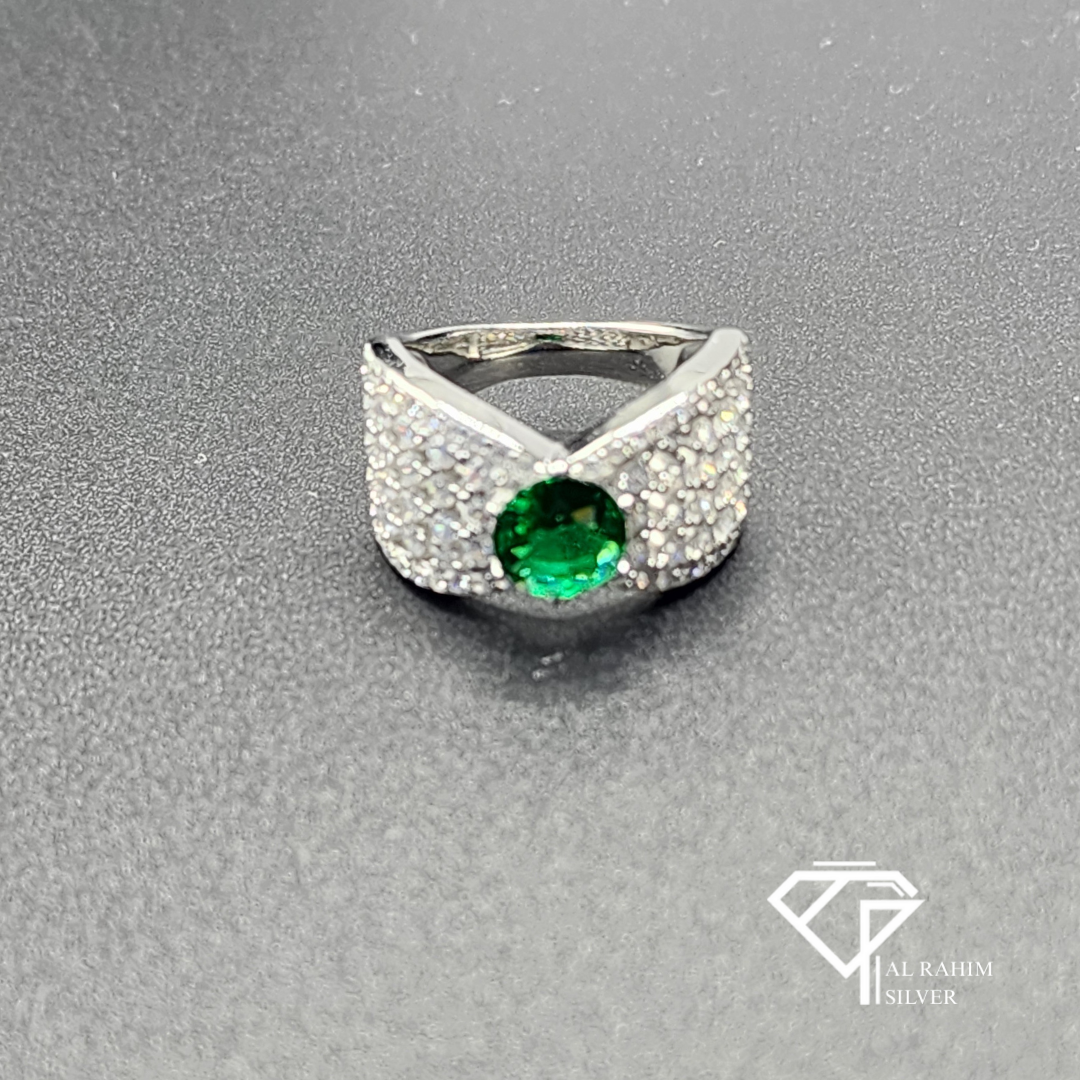 Emerald Bow Rhodium Ring โ 6.1g Elegant Charm