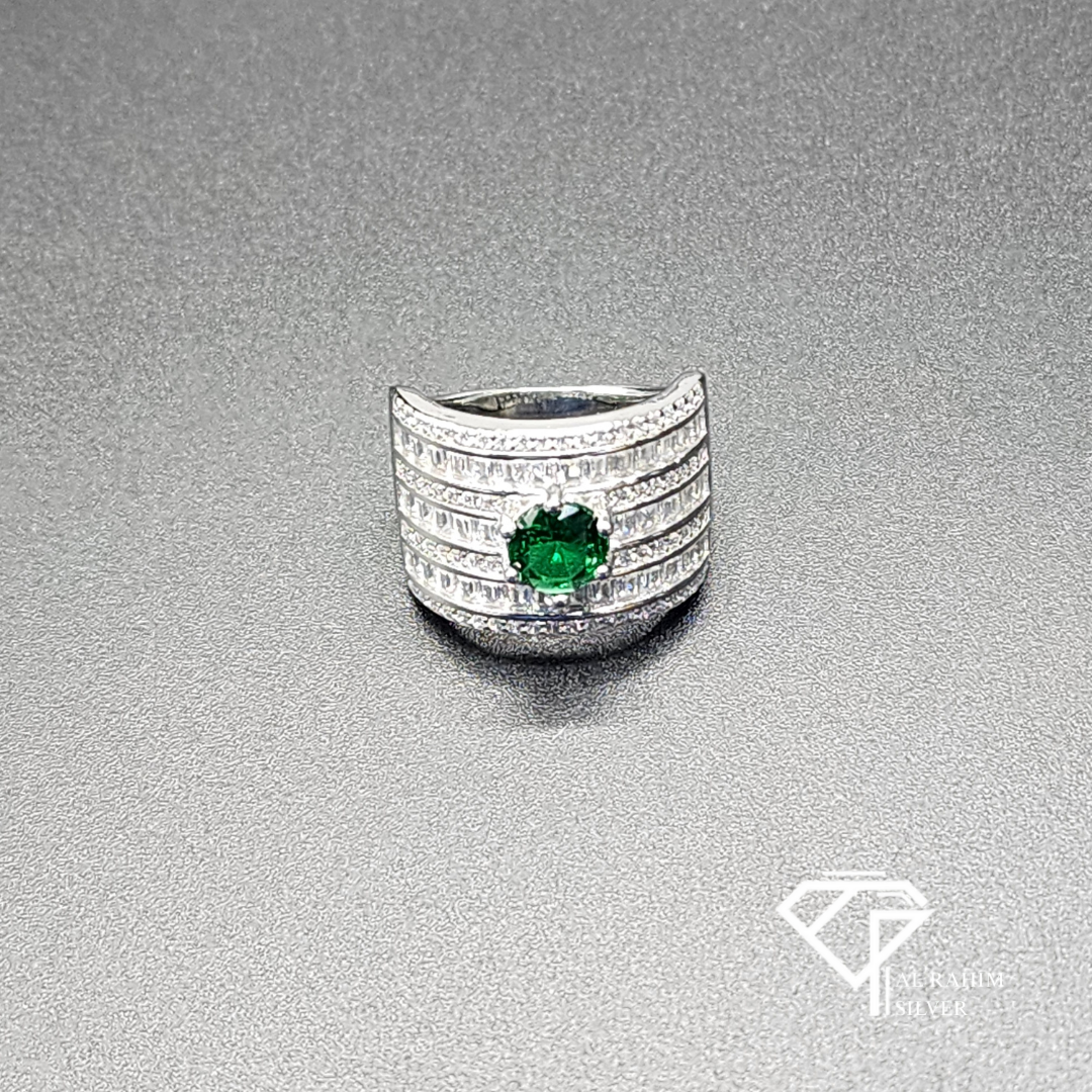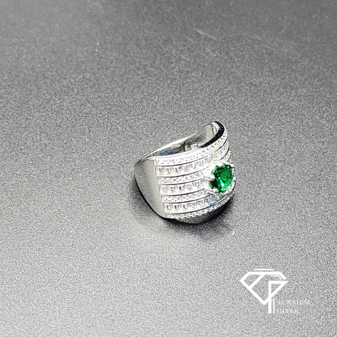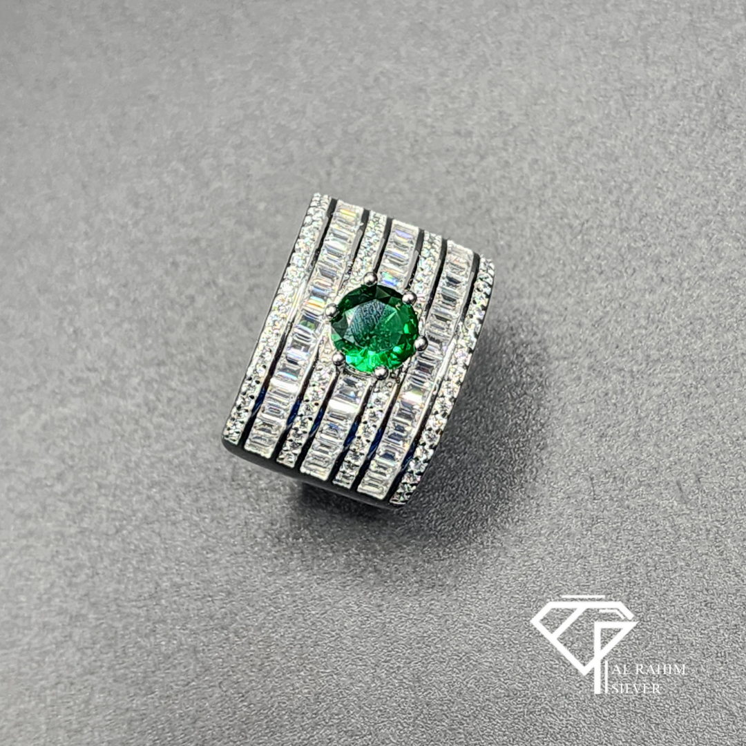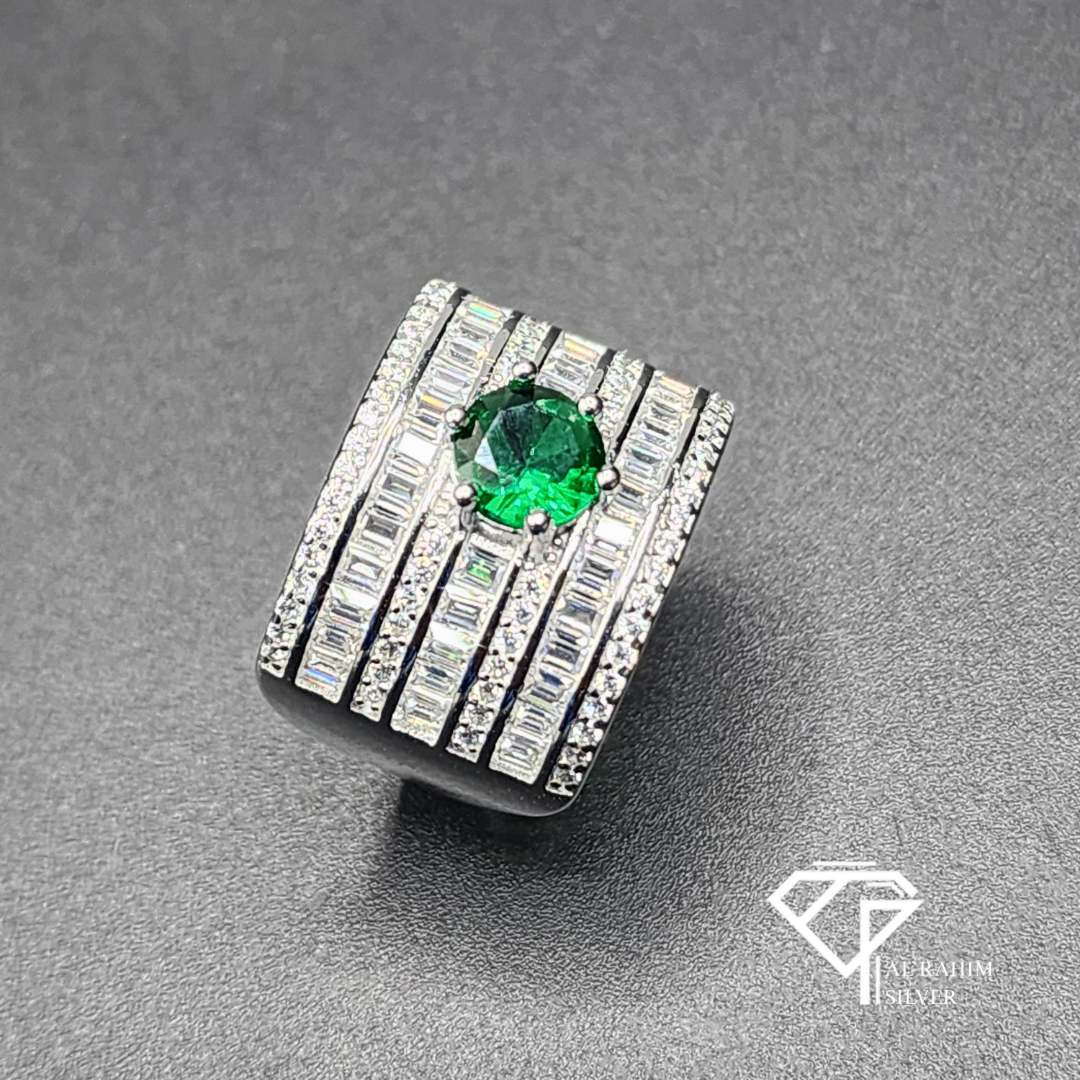 Emerald Column Rhodium Ring – 5.9g Modern Elegance