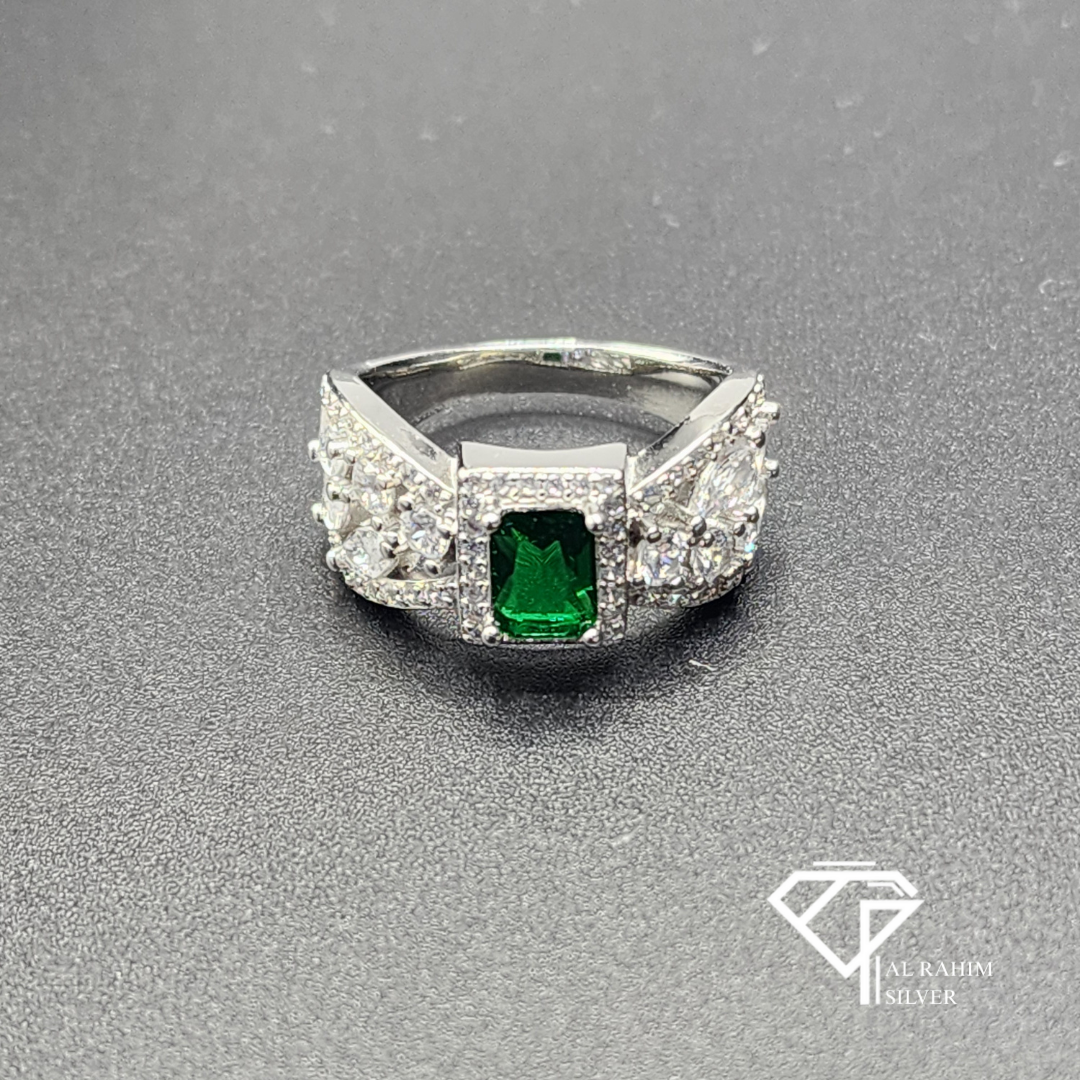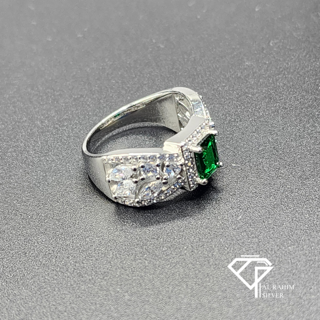 Emerald Ribbon Rhodium Ring – 6.2g Graceful Elegance