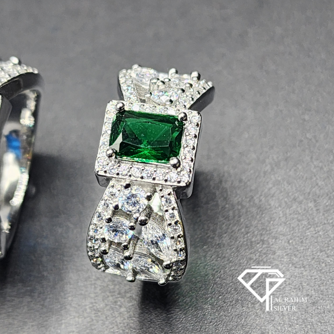 + Free ShippingElevate your style with our Emerald Ribbon Rhodium Ring, crafted with premium rhodium plating for a brilliant and long-lasting shine. Weighing 6.2 grams approximately, this design features a vibrant emerald-green stone set in a flowing ribbon-inspired frame — representing elegance, charm, and sophistication. Perfect for special occasions or enhancing your everyday look.