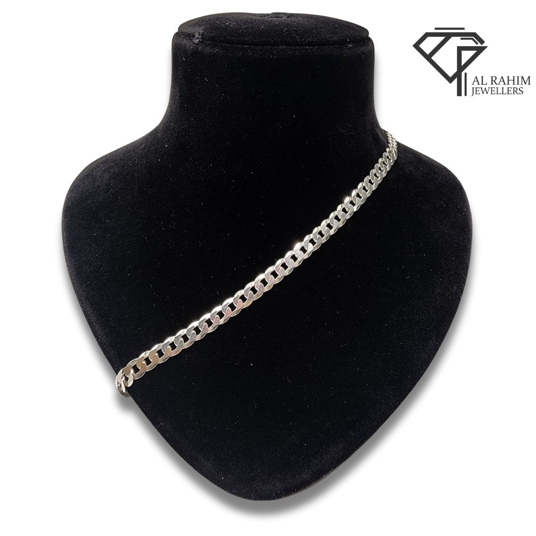 Elevate your jewelry collection with our Premium Curb Silver Chain, skillfully crafted from 925 sterling silver. Featuring a smooth, durable curb link design, this 31.6-grams chain measures 24inches in length, offering both timeless style and versatility. Whether for everyday wear or a special occasion, this chain is the perfect addition to any look.