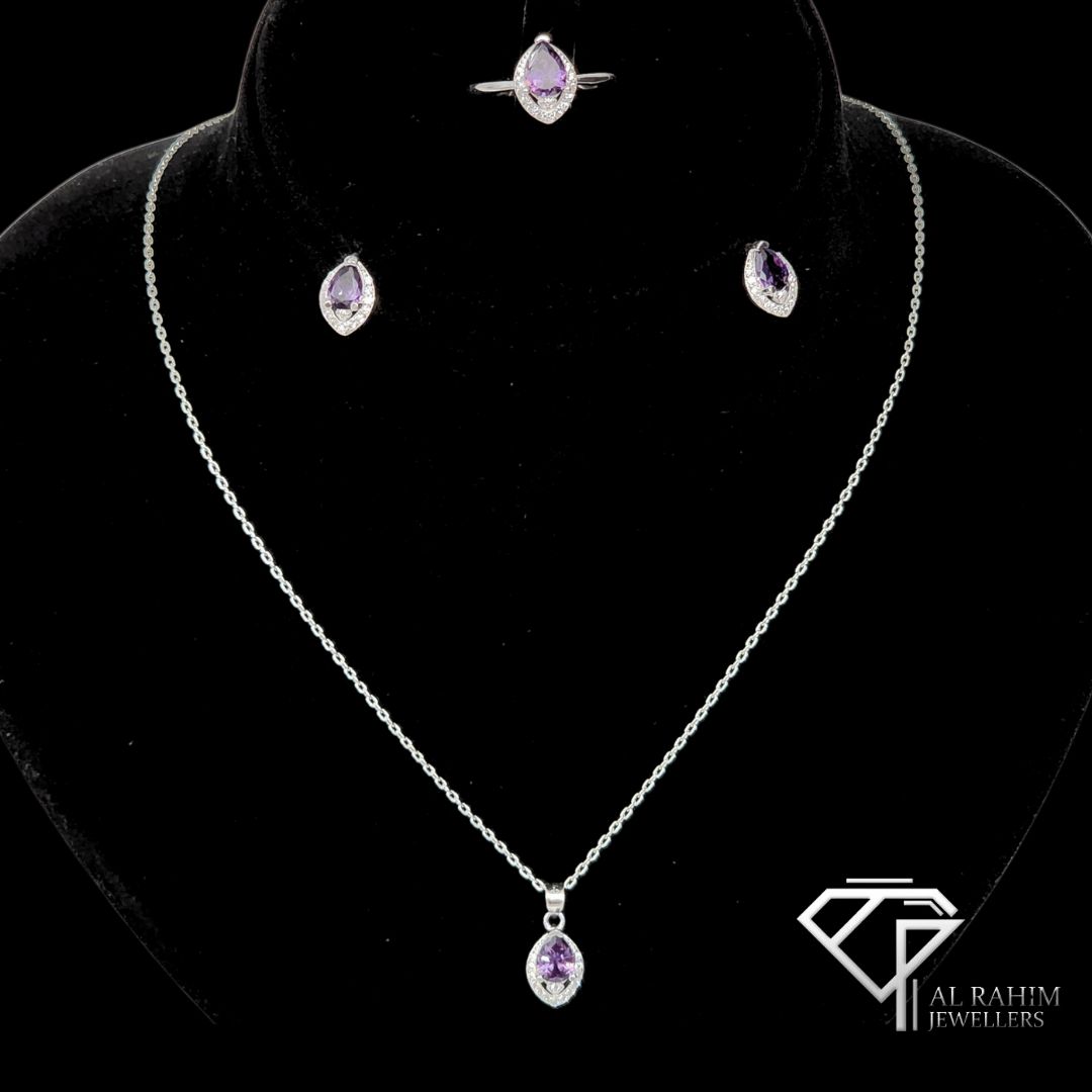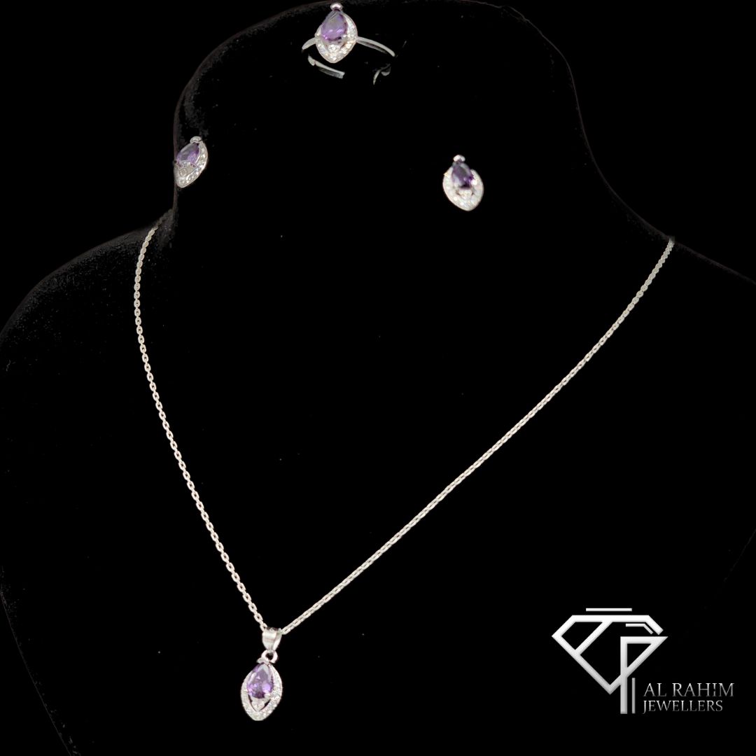 + Free ShippingAdd a touch of regal elegance with our Purple Marquise Cut Zircon Silver Locket Set, crafted from 925 sterling silver. Weighing 8.7 grams, this set features a stunning marquise-cut purple zircon stone, radiating bold color and sophistication, making it the perfect statement piece for any occasion.