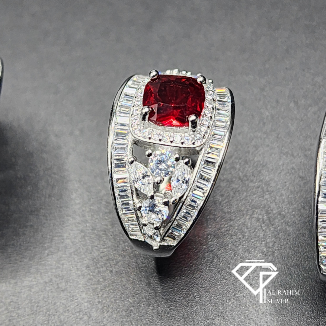 Command attention with our Red Crest Rhodium Ring, crafted with premium rhodium plating for a brilliant and long-lasting shine. Weighing 5.9 grams approximately, this design features a striking red stone set in a crest-inspired frame โ€” representing power, elegance, and sophistication. Perfect for special occasions or enhancing your everyday style.
