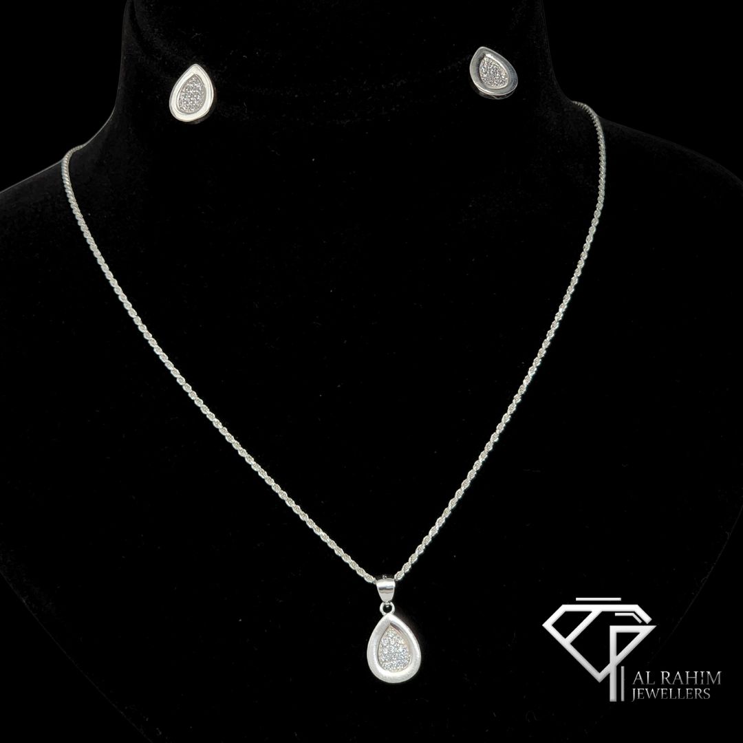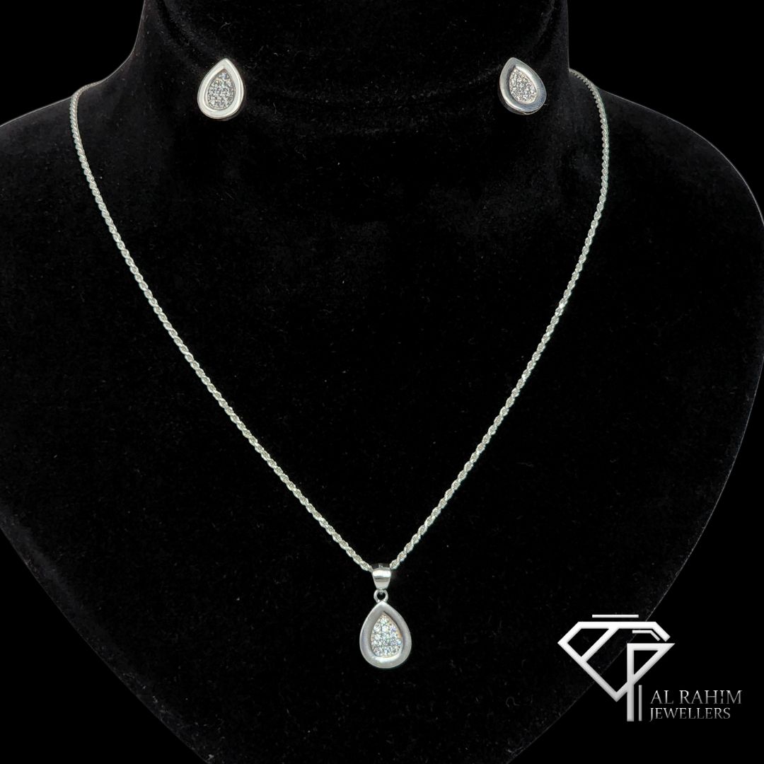 Teardrop White Zircon Silver Locket Set โ 8.1g Timeless Elegance