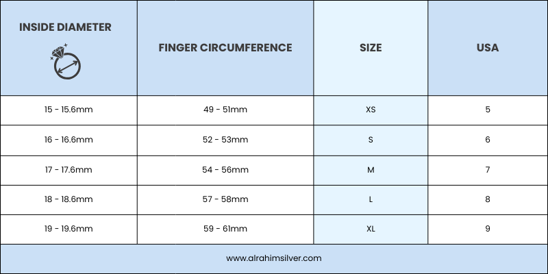 - Use the Finger Circumference column in the chart above to find your best match. Unfortunately, this method isn't the most accurate and we recommend you actually go down a size or two from what it states. E.g. You measure 65mm = XXL but you are actually a XL/ L.